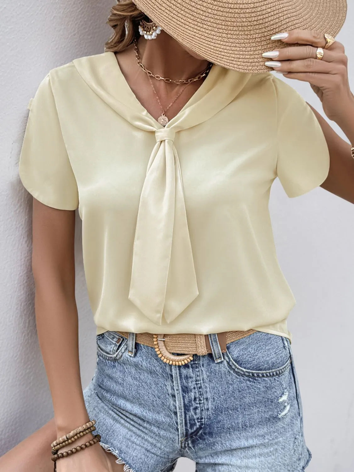 Satin Short Sleeve Blouse
